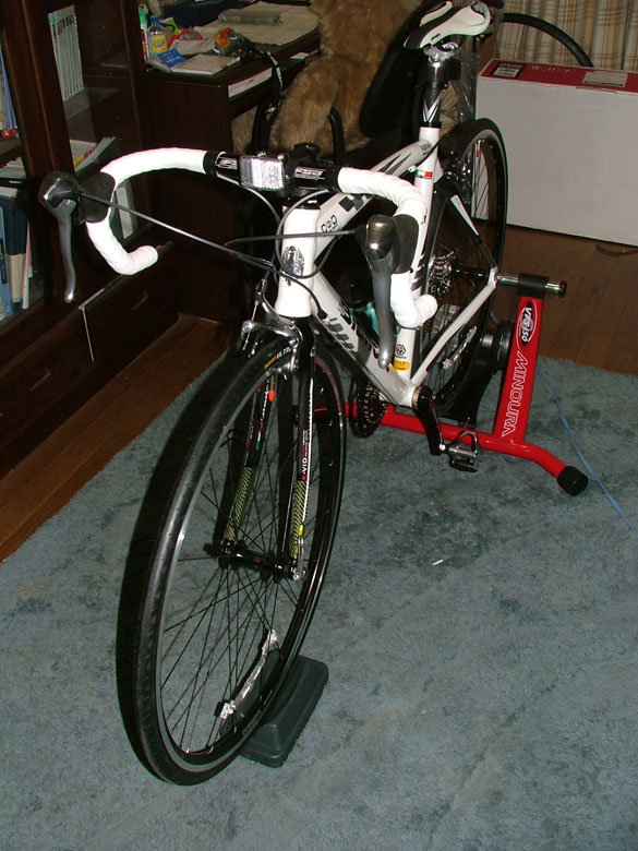 ローラー台を組み立て、バイクをセットしそれからサイク
